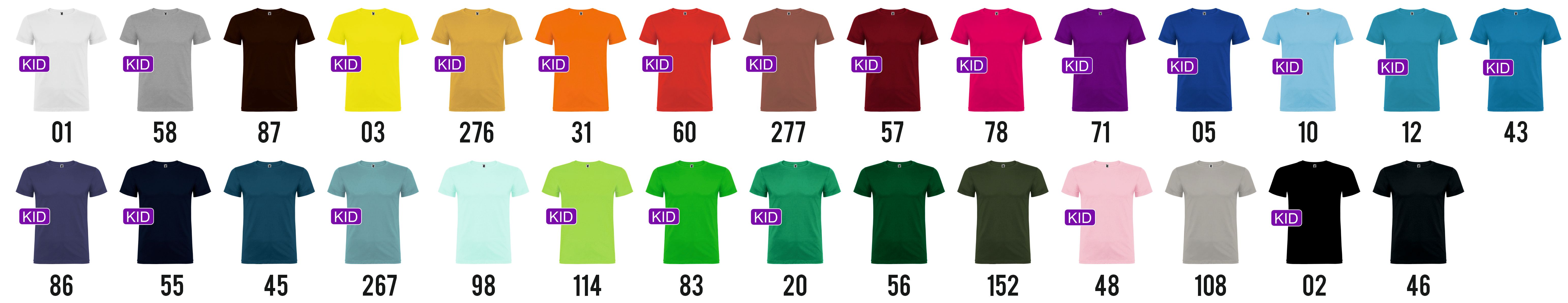 Camiseta de manga corta de cuello redondo doble con elastano, confeccionada en tejido tubular en tallas de adulto, y con costuras laterales en tallas de niño, con cubrecosturas reforzado en cuello.